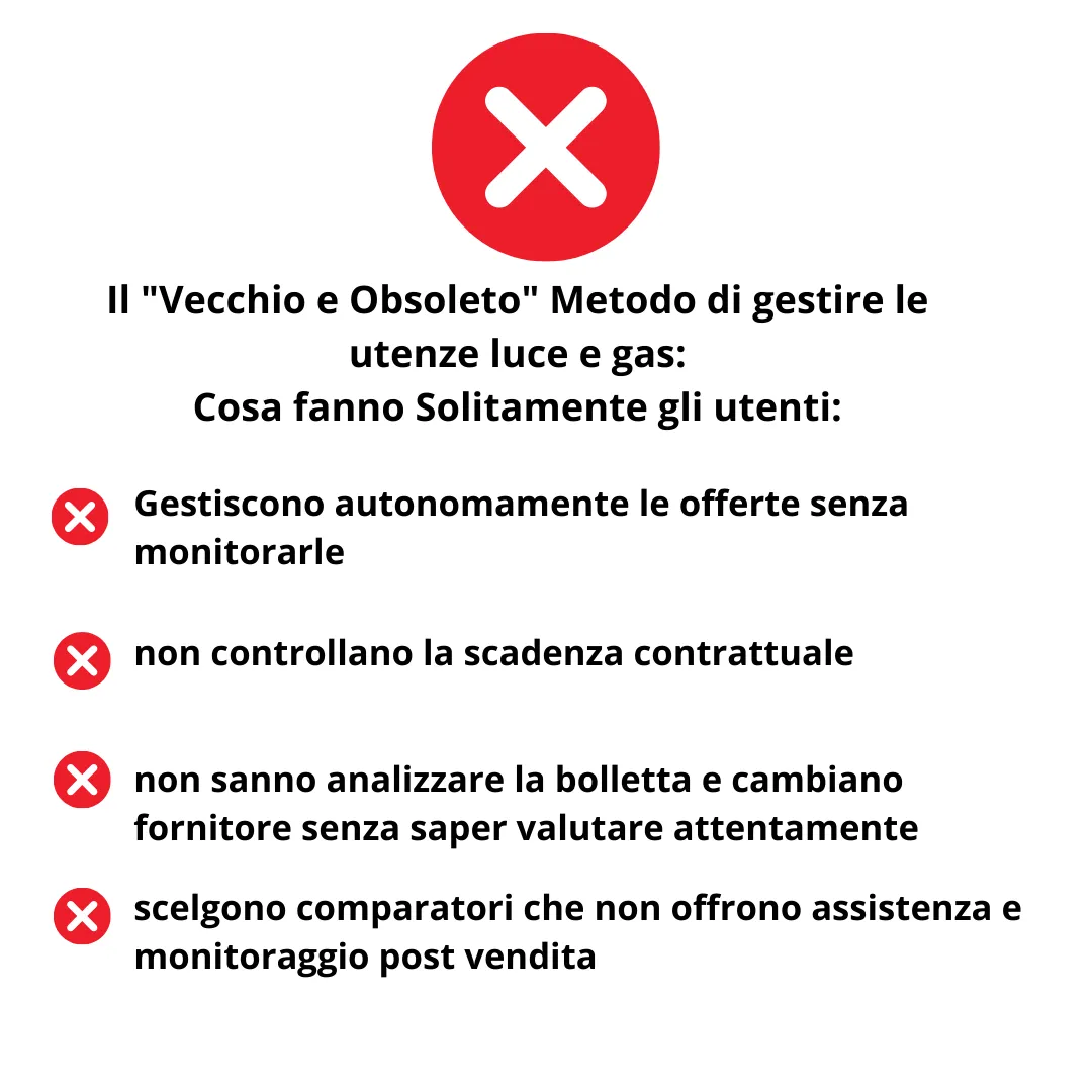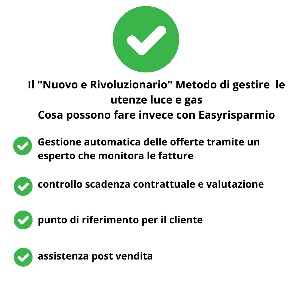Effettuiamo – per OGNI richiesta – un’analisi personalizzata dei tuoi dati inserendoli nel nostro software per arrivare alla stima del risparmio che potrai ottenere con le nuove offerte.